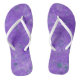 Suas divertidas sandalias roxas de verão têm salpicos de azul-turquesa e