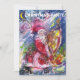 Pintura colorida, branca e artística em acrílico, Papais noeis estão tocando harpa à lua, coruja, ornamentos florais, plantas de inverno, brinquedos para crianças, bagas holly em cores vermelho vivo, verde, branco, azul, amarelo. por Búlgaro Lumini (c)