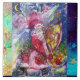 Pintura colorida, branca e artística em acrílico, Papais noeis estão tocando harpa à lua, coruja, ornamentos florais, plantas de inverno, brinquedos para crianças, bagas holly em cores vermelho vivo, verde, branco, azul, amarelo. por Búlgaro Lumini (c)