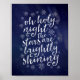 Oh Santa noite, impressão de Natal com aquarela apresenta a tipografia escrita moderna com a mão contra um céu noturno adorável. Parece encantador para a estação alegre.