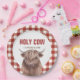 Santa Vaca! Chapas brancas de xadrez e festa de aniversário vermelha.