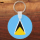 A bandeira do Santo Lúcia foi perfeitamente colocada na FOB circular deste chaveiro. Um belo lembrete da herança Santo Lucian.