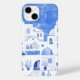 Pintura de paisagem branca e azul de aquarela baseada na ilha grega de Santorini. Arte original de Nic Squirrell.