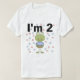 Um adorável design de segundo aniversário em T-shirts, cartas, adesivos, ímanes, sacos de tote e mais com um sapo verde segurando um fosco azul e um texto que diz "Eu tenho 2".
