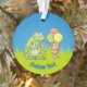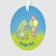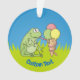 Sapo sorridente rouba um cone de sorvete com a língua. Texto personalizado de ambos os lados.