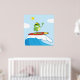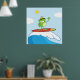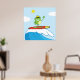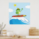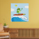 Um sapo surfando em uma grande onda. Esta design parece realmente eficaz nestes Poster