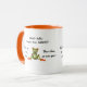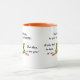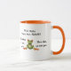 Duas caneca de tom (laranja e branca) com sapo bonito elogiando o quanto o café e o bebedor são quentes. Perfeito como presente de aniversário ou presente de Dia de os namorados para alguém especial. Todo texto é personalizável.