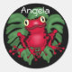 Sapo Vermelho Sobre O Adesivo Redondo De Folhas Ve