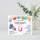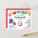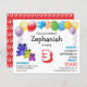 Convite de aniversário para Crianças, personalizado, bonito e colorido, mostrando um trio de sapos vibrantes de olhos largos e um conjunto de balões coloridos contra um fundo branco comum. Na frente, você pode personalizar o nome e a idade da criança, além da data, dos detalhes do rsvp e do local. Ao contrário, há um padrão em camadas que está ligado à idade à frente. (Estes são convites orçamentários, portanto lembre-se de adicionar envelopes e/ou transferir design para o estoque do cartão, se preferir.) Este design é adequado para qualquer idade até 9 anos.