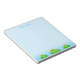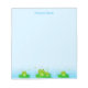 Sapos felizes e fofos em bloco de notas azul turquesa claro. Sapos simbolizam boa sorte!