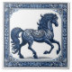Um garanhão-safira, pego de médio, incorpora graça botânica neste azulejo cerâmico. Padrões florais detalhados, que lembram flores delicadas, atravessam o corpo do cavalo, fluem o homem e a cauda, estendendo-se à sua sela ou arnês decorativos. O artista retrata habilmente os poderosos músculos e movimentos fluidos do animal. Uma borda de intrincados designs florais na mesma matiz azul profunda que enquadra a imagem. A composição equilibrada e uma perspectiva levemente elevada enfatizam a postura dinâmica do cavalo. As cores muda e a iluminação suave criam uma atmosfera serena e vintage, evocativa do artesanato clássico do azulejo. Este design emprestado meticulosamente irradia beleza e artista clássicas.