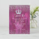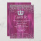 O doce convite de aniversário de 16 meninas feito em um olhar cor-de-rosa orquídeo. Gráficos de tonalidade prateada e uma coroa decoram o convite. Todo texto está pronto para personalizar para o dia especial da sua filha. Muito chique convite para uma festa elegante.