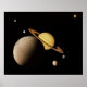 Saturno foi visto pela Voyager 1 em 1980. As espaçonaves gêmeas Voyager 1 e 2 continuam explorando onde nada da Terra havia voado antes, elas estão atualmente no 33º ano após os lançamentos de 1977 e ainda enviam dados para a Terra. Algumas das luas visíveis são Titã, Tethys, Dione e Rhea.