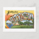 Lembras-te das longas viagens de estrada quando eras criança? Seu irmãozinho não pararia de perguntar, "Nós já estamos lá?" Viva a sua infância com este cartão de posto clássico de excelente de Augusta. Retro e incrível, ele apresenta os famosos marcos da cidade de Jardim