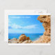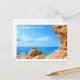 Cartaz com rocha, praia e mar e com sinal de "Saudações de Costa Brava".
