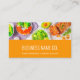 Essa saúde limpa, bem-estar, comidas orgânicas saudáveis, restauração de modelos de cartão de negócios personalizadas impressão a pedido é perfeita para negócios saudáveis de comidas, produtos orgânicos, restauração saudável de comidas, serviço de comidas orgânica, restauração saudável de comidas, revolução verde, produtos orgânicos, fazenda para mesa negócio, fazenda orgânica, mercado de agricultores e muito mais. Ainda não encontras o que gostas? Visite nossa página de loja para mais cartão de visita ideias e modelos. - Design apresenta comida, abacate e legumes saudáveis em tons verdes, laranja, amarelo e branco claros, em fundo laranja.