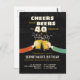 Duas mãos com pintas de aplausos de cerveja até 40 anos de aniversário, desenhadas no estilo de 50 e desenho retrô de 60 anos, sobre fundo preto de quadro negro. Cartão de convite para aqueles que estão no orçamento.