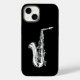 Design com ilustração carvical de saxofone em fundo preto; elegante instrumento musical simples de jazz design
