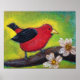 A duro de encontrar homens Scarlet Tanagers está entre as aves mais bonitas da floresta oriental. Eles têm corpos vermelhos ricos e asas pretas. Este é um trabalho de arte de mídia mista na canvas com textura.