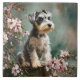 Schnauzer Puppy Among Spring Cherry Blossoms