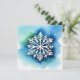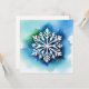 Romantische Karte mit einem Schneestern im Aquarell-Design in den Farben türkis, blau, grün.