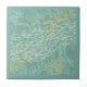 This coastal ceramic tile design features a lively school of stylized white fish swimming across a muted palette of seafoam, driftwood gold, dusty teal, and deep teal. The flowing, hand-drawn lines create a sense of movement, while the abstract coral shapes and watery textures add depth and a calm, ocean-inspired atmosphere. Perfect for beach-inspired décor themes, it brings a touch of underwater serenity to any room. Note: design may contain generative content
