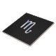 Um símbolo cromo como Scorpio zodiac em um decor de impressão de textura fina de cobra de pele de carvão preto. Um design moderno urbano para uma ideia personalizada de presente de aniversário de excelente. Designs de bordados estão disponíveis em uma seleção de opções populares de cor. Use o link "Perguntar a este Designer" para entrar em contato conosco com suas solicitações especiais de design ou para obter assistência com suas necessidades de personalização.