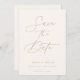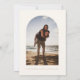 Quadro de arco moderno, plano guarde o cartão com fotos de data. Modelo ao estilo design de tipografia minimalista com tipografia bege em fundos de cor de areia macia.