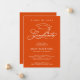 Um boné de graduação, a palavra "graduado", e seus detalhes em letras brancas elegantes em convites de anúncios laranja são uma maneira bonita de contar aos amigos e familiares sobre sua graduação. *ITEMS correspondentes e MAIS cores feitos para você em nossa coleção.