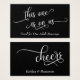 Ofereça aos seus hóspedes algumas libações complementares com esses ingressos de bebidas versáteis. Seja a sua recepção de casamento ou outro evento festivo, esses vales são úteis em qualquer circunstância em que a simples elegância esteja em ordem. // Num site você lê "este está sobre nós" e "Bom para uma bebida adulta" e no outro lado está "aplausos" e um modelo para os nomes dos hospedeiros. Sobreposições gráficas de texto não editáveis são renderizadas em uma fonte elaborada e deslumbrante de script de caligrafia com espirais e floreamentos. Outro texto aparece em itálico em um tipo versátil de serif que pode ser alterado se você desejar. Todo o texto está em branco e o fundo editável é preto; mude-o para qualquer cor que você quiser ou até adicione sua própria cor de fundo! Por favor, não hesite em contactar se tiver pedidos ou necessitar de assistência personalizada. // 55 // Concebida por Melody Watson para Paper Muserie.