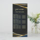 A classic style black and gold business price list menu with qr code scan to in a modern minimalist style. The versatile template can easily be updated with your company logo, graphic or photo, QR code and custom menu text.