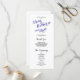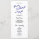 Uma magnífica tipografia azul e marinho preto em um fundo branco faz com que esses elegantes programas modernos de casamento se destacem. Design por Elke Clarke © Personalize com sua cor de fundo e todas as suas informações pessoais para um programa de casamento de luxo que seus contínuos podem distribuir enquanto seus convidados entram na igreja ou estão sentados onde a cerimônia acontecerá. Ajuda as pessoas a seguirem-se durante a cerimônia, mas também atua como guardiã dos seus hóspedes. Você pode usar os campos modelo para preencher as informações sugeridas sobre a festa de casamento e a ordem do serviço e o obrigado que você envia ou selecionar "personalizar" e usar o menu editar para alterar o espaçamento de texto, as fontes, as cores conforme desejar criar seus próprios programas de casamento.