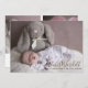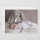 Doce e elegante anúncio de nascimento com sua foto de bebê recém-nascido, com o nome do bebê sobreposto no roteiro de caligrafia de cacau para corresponder ao fundo. Personalize com as estatísticas de natalidade do bebê por baixo. Adicione duas fotos adicionais ao layout da colagem traseira, com o texto da mensagem de boas-vindas no centro. Você pode clicar em "personalizar mais" e usar a ferramenta design para alterar a cor, o tamanho ou a fonte da fonte.