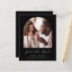 Este simples e minimalista Cartão Salvar a Data apresenta um boho de fotos acima das palavras "Salvar a Data" em um elegante roteiro de manuscrito branco, seguido pelos nomes do casal, data do casamento e cidade em sans serif em um fundo preto. Adicione uma mensagem mais detalhada com informações adicionais sobre o contrário.