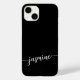 Capas de iphone Personalizada Personalizada de Script de Assinatura Personalizada de Script de Monograma Minimalista Simples. Este design com seu primeiro nome em um estilo bonito, escrito à mão, estilo swash tail, tipografia de assinatura em branco sobre fundo preto. Estes são fáceis de personalizar. Excelente presente feminino para aniversário, dia da mãe, doce festa de aniversário 16, para festa de formatura e é para a garota que ama coisas na moda únicas.