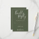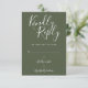 Este elegante cartão RSVP verde-oliva e branco pode ser personalizado em letras brancas-chic. Você pode adicionar informações adicionais, como a escolha do menu no verso. Perfeito para casamentos, chás de panela, chás de fraldas, batismos, festas de noivado, comemorações de aniversário, graduações, aniversários e outros eventos especiais ao longo do ano! Projetado por Thisnotme©