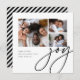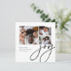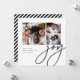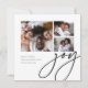 Compartilhe alegria com esses cartões de natal coloridos e modernos, com 3 de suas fotos favoritas (um quadrado e duas pequenas horizontais ou paisagens orientadas). "Joy" aparece em um roteiro casual, escrito à mão em preto clássico. Personalize com seu cartões de natal personalizado, seu nome de família e o ano na base. Uma escolha de olhar em forma quadrada única e arredondada para as suas saudações de Natal de 2021.