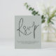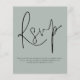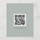 Um valor para o alternativo do ORÇAMENTO em tamanho menor de 4,5 x 5,6" de semirbrilho de 110 lbs, que é de espessura semelhante a um cartão postal (no entanto, não é adequado para uso como cartão postal). POR FAVOR, OBSERVE QUE HÁ UM convite por folha. Simples Código QR Script Casamento Silvery Sage Green RSVP. Um gabinete de opções conveniente para pedir aos seus convidados que digitalizem o seu código QR para o seu site de casamento para RSVP. Uma tipografia de na moda set para o cabeçalho principal RSVP complementando o resto do texto que você pode personalizar facilmente, com código QR no verso. Simplesmente substitua por você.