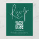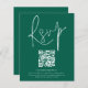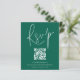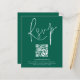 Código QR de Orçamento Script Wedding Emerald RSVP Um valor para alternativo de orçamento em um tamanho menor, 4,5 x 5,6", com peso de 110 lb, que é de espessura semelhante a um cartão postal (no entanto, não é adequado para uso como cartão postal). POR FAVOR, OBSERVE QUE HÁ UM convite por folha. Um gabinete de opções conveniente para pedir aos seus convidados que digitalizem o seu código QR para o seu site de casamento para RSVP. Uma tipografia de na moda set em branco para o título principal RSVP complementando o resto do texto que você pode personalizar facilmente.