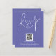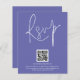 Um valor para o alternativo do ORÇAMENTO em tamanho menor de 4,5 x 5,6" de semirbrilho de 110 lbs, que é de espessura semelhante a um cartão postal (no entanto, não é adequado para uso como cartão postal). POR FAVOR, OBSERVE QUE HÁ UM convite por folha. RSVP Azul de Casamento de Script de Código QR Um gabinete de opções conveniente para pedir aos seus convidados que digitalizem o seu código QR para o seu site de casamento para RSVP. Uma tipografia de na moda set em branco para o título principal RSVP complementando o resto do texto que você pode personalizar facilmente em um fundo violeta azul-piscadela.