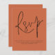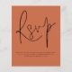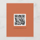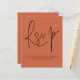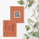 Simples Código QR Script de Casamento Terracotta RSVP. Um gabinete de opções conveniente para pedir aos seus convidados que digitalizem o seu código QR para o seu site de casamento para RSVP. Um alternativo de 4,5" x 5,6" compatível com o orçamento. Disponível em um STOCK de PLACA SEMI GLOSS 110 lb ou um STOCK de PAPEL THINNER SATIN FINISH 80 lb. Uma tipografia de na moda set para o cabeçalho principal RSVP complementando o resto do texto que você pode personalizar facilmente, com código QR no verso. Simplesmente substitua por você.