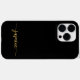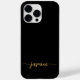 Negra Minimalista Simples E Dourada Nome Monograma Signature Script Personalizado capas de iphone Personalizada. Este design com seu primeiro nome em um estilo bonito, escrito à mão, estilo swash tail tipografia de assinatura em fundo preto e ouro. Estes são fáceis de personalizar. Excelente presente feminino para aniversário, dia da mãe, doce festa de aniversário 16, para festa de formatura e é para a garota que ama coisas na moda únicas.
