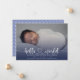 Este é um adorável modelo de anúncio de bebê moderno e simples. Personalize com sua própria fofa fofa de seu recém-nascido e adicione seus detalhes. Há um gradiente azul elegante que dá a esta modelo uma borda única.