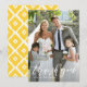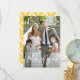 Cartão de agradecimento de foto elegante com caligrafia branca à mão com padrão de diamantes amarelos ikat. Este cartão plano será perfeito para cartão de agradecimento de casamento ou cartão de agradecimento de formatura. Você pode personalizar a foto, textos e padrão de fundo. Uma versão de cartão postal também está disponível.