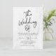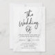 Convite de casamento na moda moderno com fonte de script de tendências, fundo de mármore branco e espaços reservados para seu convite de casamento personalizado. A parte de trás do convite pode ser alterada para uma cor de sua escolha com a ferramenta Personalizar.