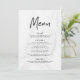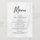 Na moda e cartão moderno de cardápio de casamento com fonte preta de roteiro, fundo de mármore branco e espaços reservados para o seu menu de casamento personalizado. A parte de trás do menu de casamento de mármore branco pode ser alterada para uma cor de sua escolha com a ferramenta Personalizar.