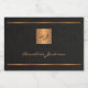 Minibeletes de vinho espumante personalizados, elegantes, com aparência de couro preto (IMPRESSO), de luxo elegante, com um quadrado monograma metálico de ouro de cobre, linhas horizontais e um script de assinatura personalizado. ++++ Você pode encontrar todas as variantes de rótulos de garrafas na coleção COPY E PASTE LINK: https://www.zazzle.com/collections/monogram_personalized_black_gold_gifts-119940943996290001