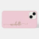 Simples, Mínimo, Dourado Nome de Monograma Elegante Rosa Elegante, Script de Assinatura capas de iphone Personalizada. Este design minimalista com seu primeiro nome em um script de caligrafia de assinatura de assinatura de estilo simples, escrito à mão, bonito, em cor dourada, em cor rosa claro para bebê ou cor rosa pincelada. Tão fácil de personalizar. Excelente presente feminino para aniversário, doce festa de aniversário 16, dia da mãe, para festa de formatura e é para a garota que ama coisas na moda únicas.