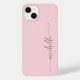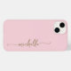 Cor-de-rosa-rosa brilhante Elegante Dourado Nome do Monograma Signature Script Personalizado capas de iphone. Este design Minimalista com seu primeiro nome em um bonito estilo escrito à mão, estilo swash tail script de tipografia de assinatura em ouro, em cor rosa claro para bebê ou cor rosa-rosa-pincel. Tão fácil de personalizar. Excelente presente feminino para aniversário, dia da mãe, doce festa de aniversário 16, para festa de formatura e é para a garota que ama coisas na moda únicas.