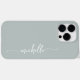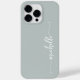 Capas de iphone Personalizada Personalizada de Script de Assinatura de Script de Assinatura Verde Elegante Girly Simple Sage. Este design Minimalista com seu primeiro nome em um bonito estilo escrito estilo swash tail script de tipografia de assinatura em verde-sábio ou verde-poeirento fundo. Tão fácil de personalizar. Excelente presente feminino para aniversário, doce festa de aniversário 16, dia da mãe, para festa de formatura e é para a garota que ama coisas na moda únicas.